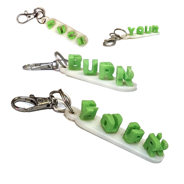 3D – Fuck Your Burn Keychain, 2023 by Paul (Pablo ExtraBall) Chaklos.