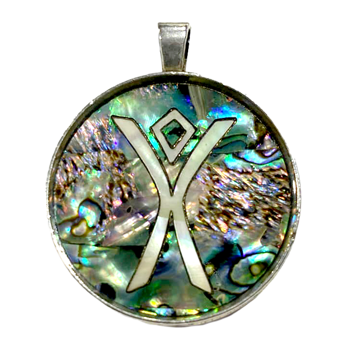 Abalone Inlaid Man Effigy, 2024 Pendant by Bob Bjorkquist.