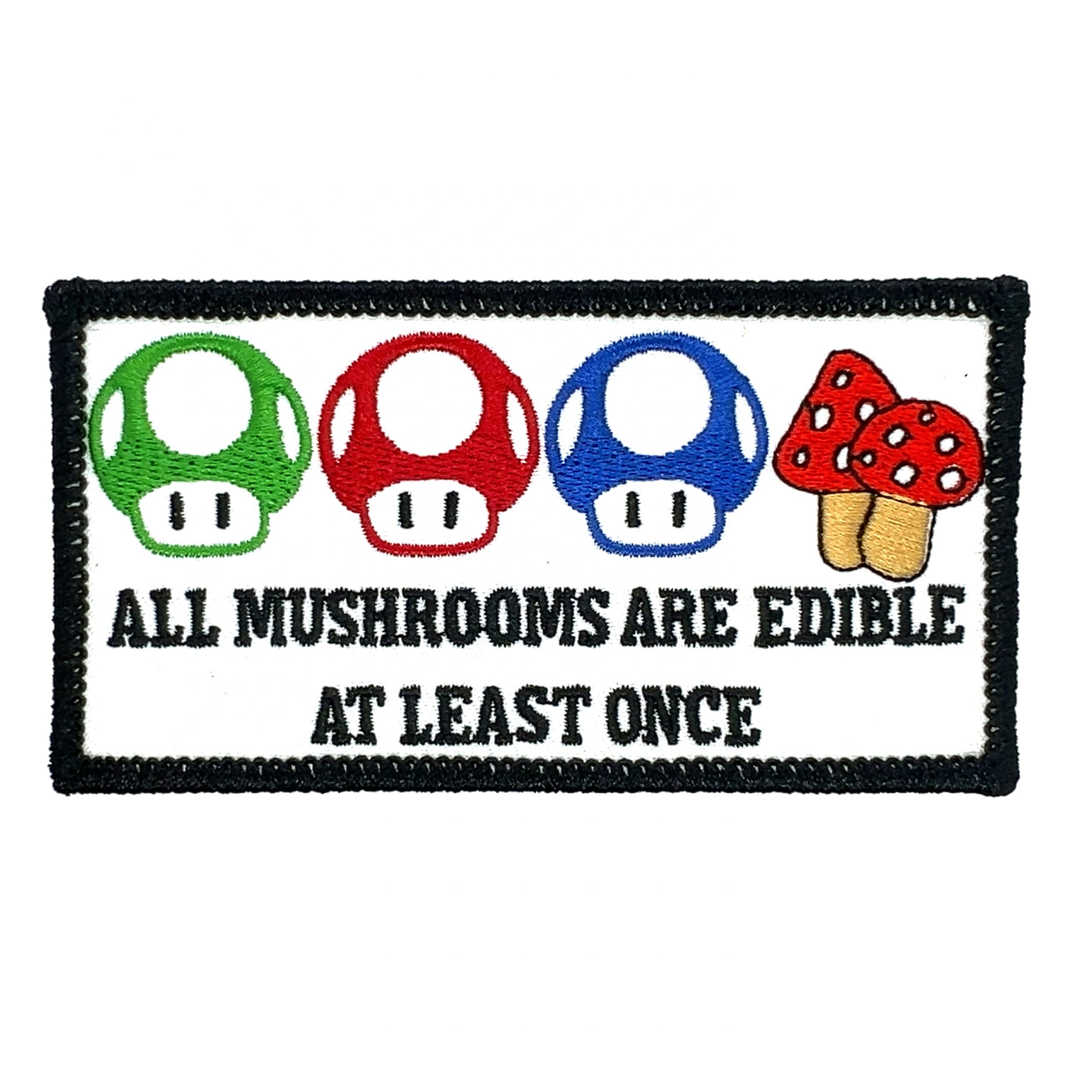 All mushrooms are edible at least once, 2024 Patch by Thomas Wyner. Part of the Lofax Elifas 2024 Group Patch Order.