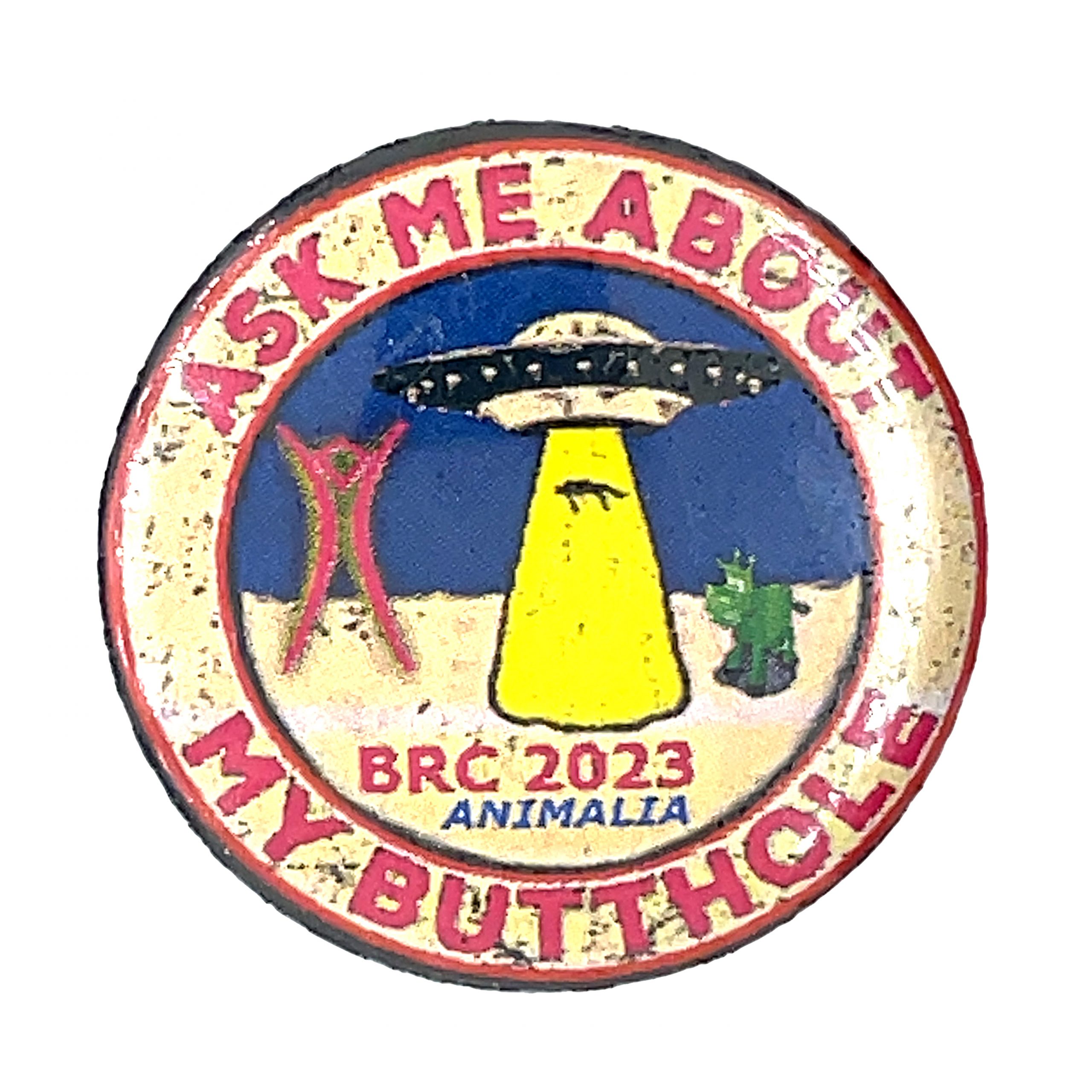 This artifact is courtesy of Swag of Burning Man Collection. Lorraine (Cookie) Bell, Curator.