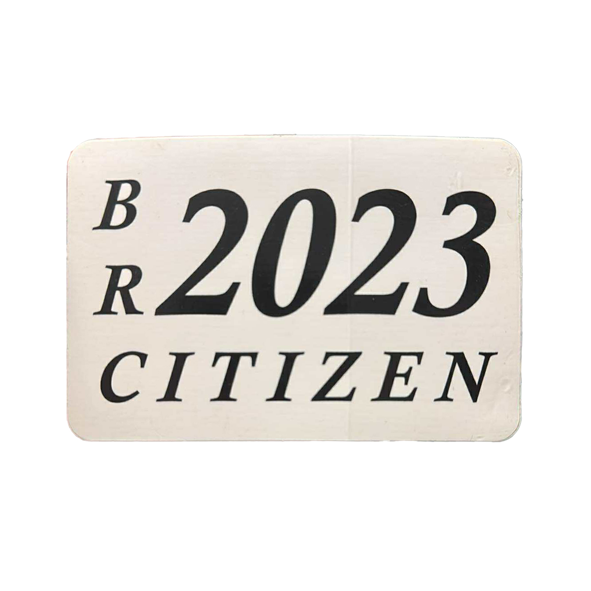 BRC Citizen, 2023 Sticker by Nori Hes. For over a decade, Nori has been creating BRC Citizen Stickers each year, along with special playa clocks that he gifts to the people he cherishes.