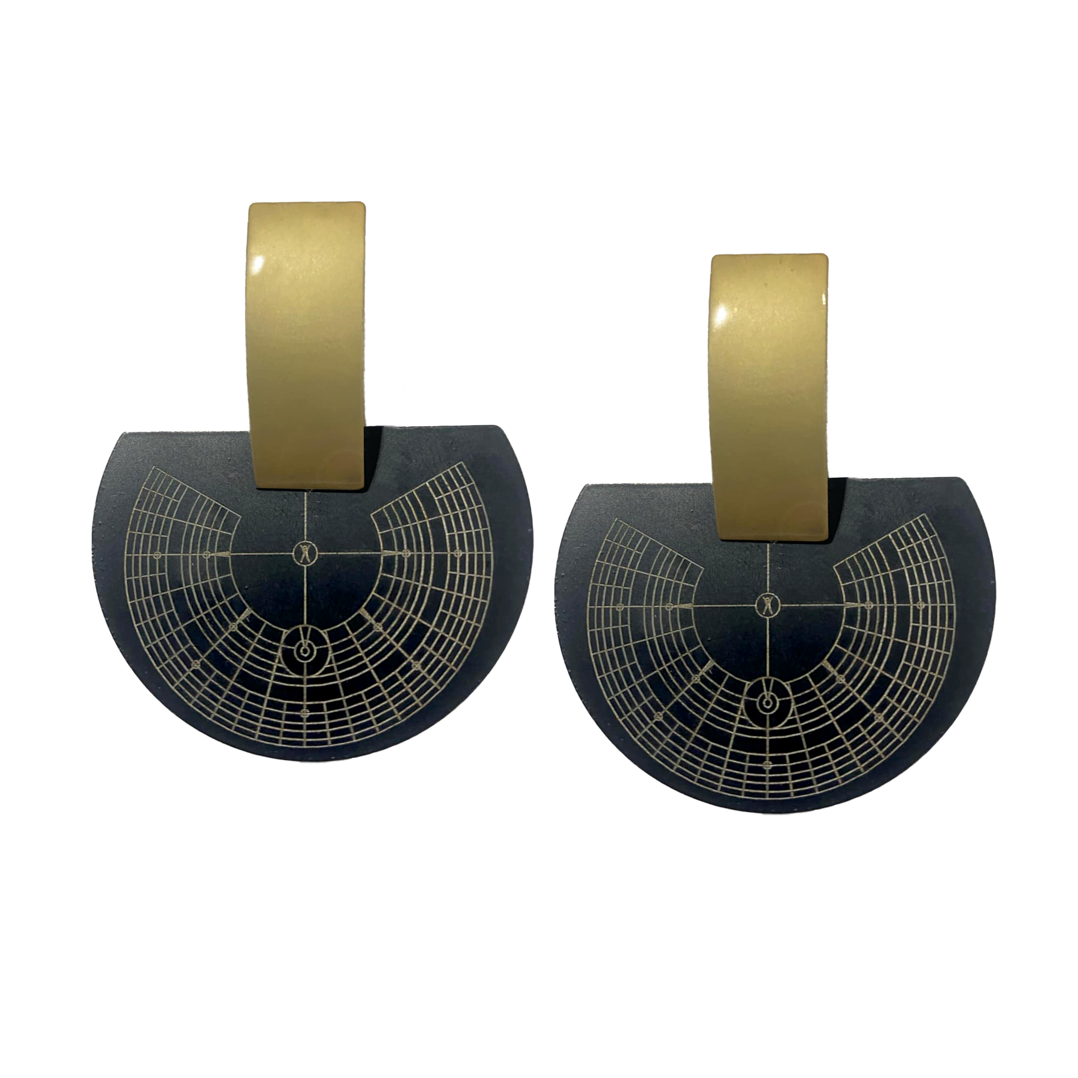BRC in metal, 2024 Earrings by Marina Koshevskaya. Metal earring with BRC laser etched.
