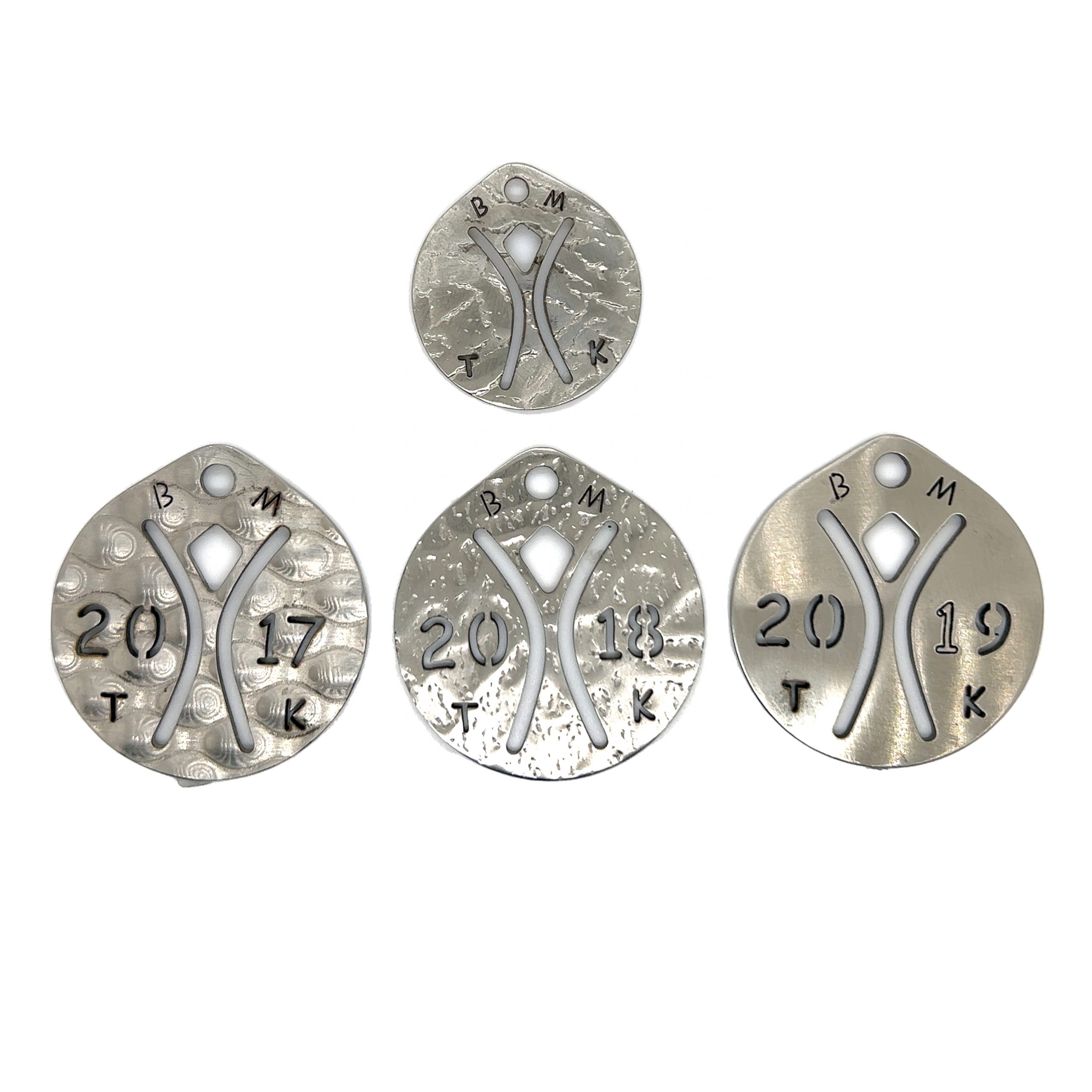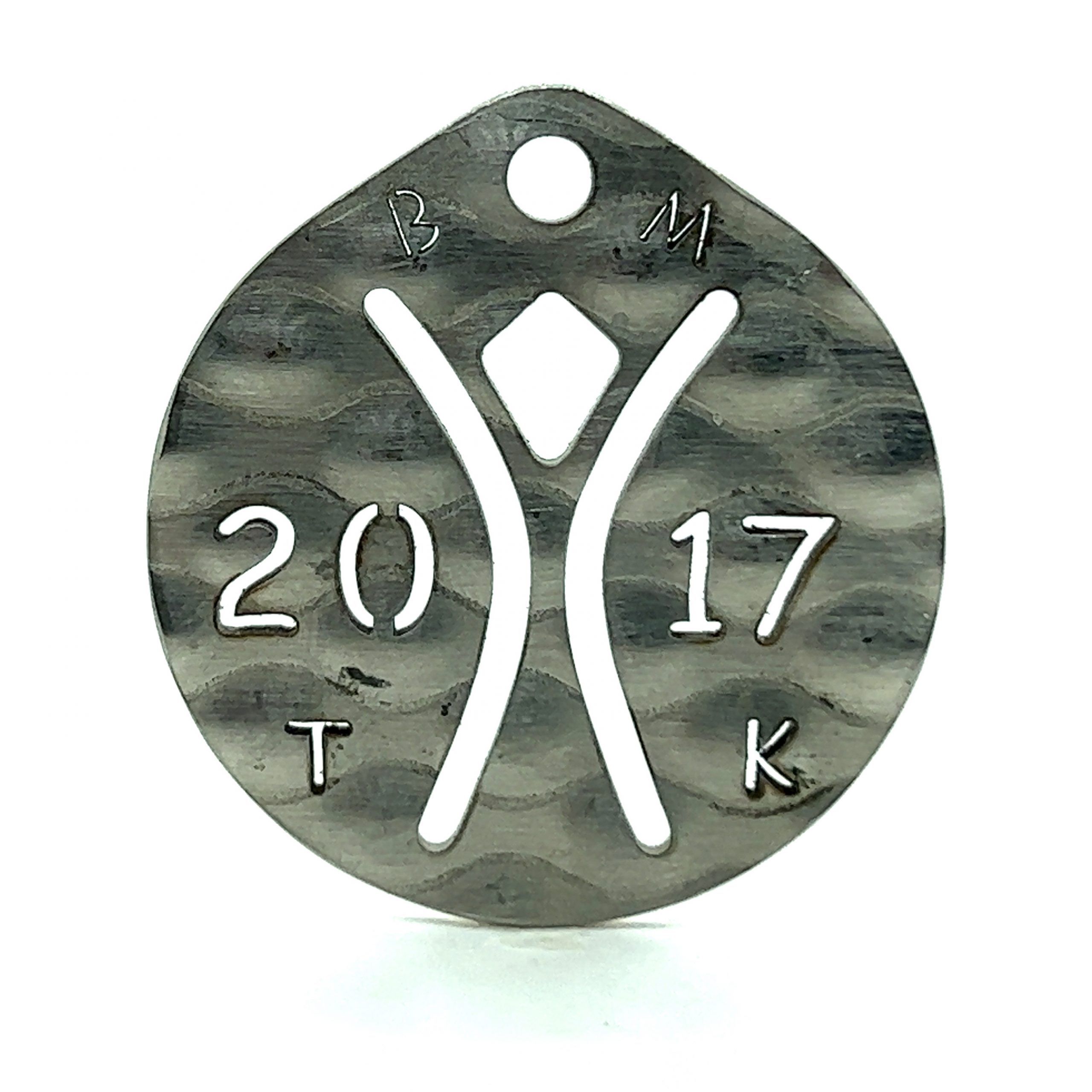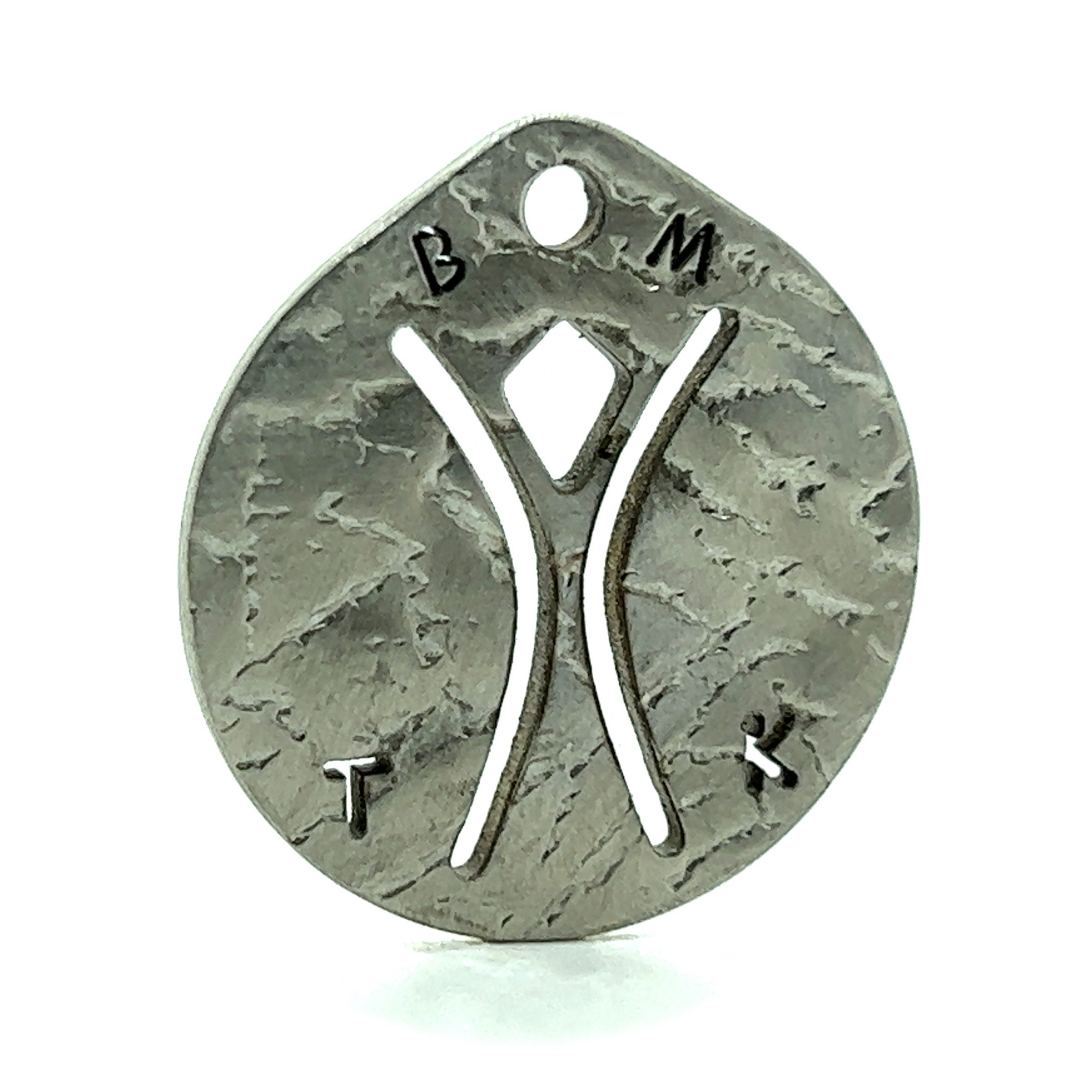 Burning Man Effigy, Hammered Pendants by TK. Laser cut on hammered metal.