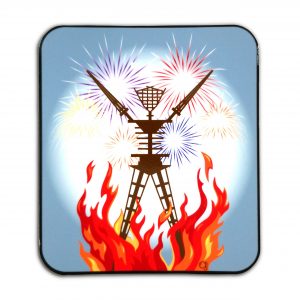 Annette writes, “With this design I hope to honor the Burning Man Project’s Radical Inclusion, Diversity, & Equity R.I.D.E. pledge, as well as highlighting one of the ten Burning Man principles: Radical Inclusion. While researching the New Progress Pride Flag colors and meanings, I was struck by the similarity in the number of colors and the letters in Burning Man. (Note: I included the color white as the background.) This similarity became my inspiration for this design.”