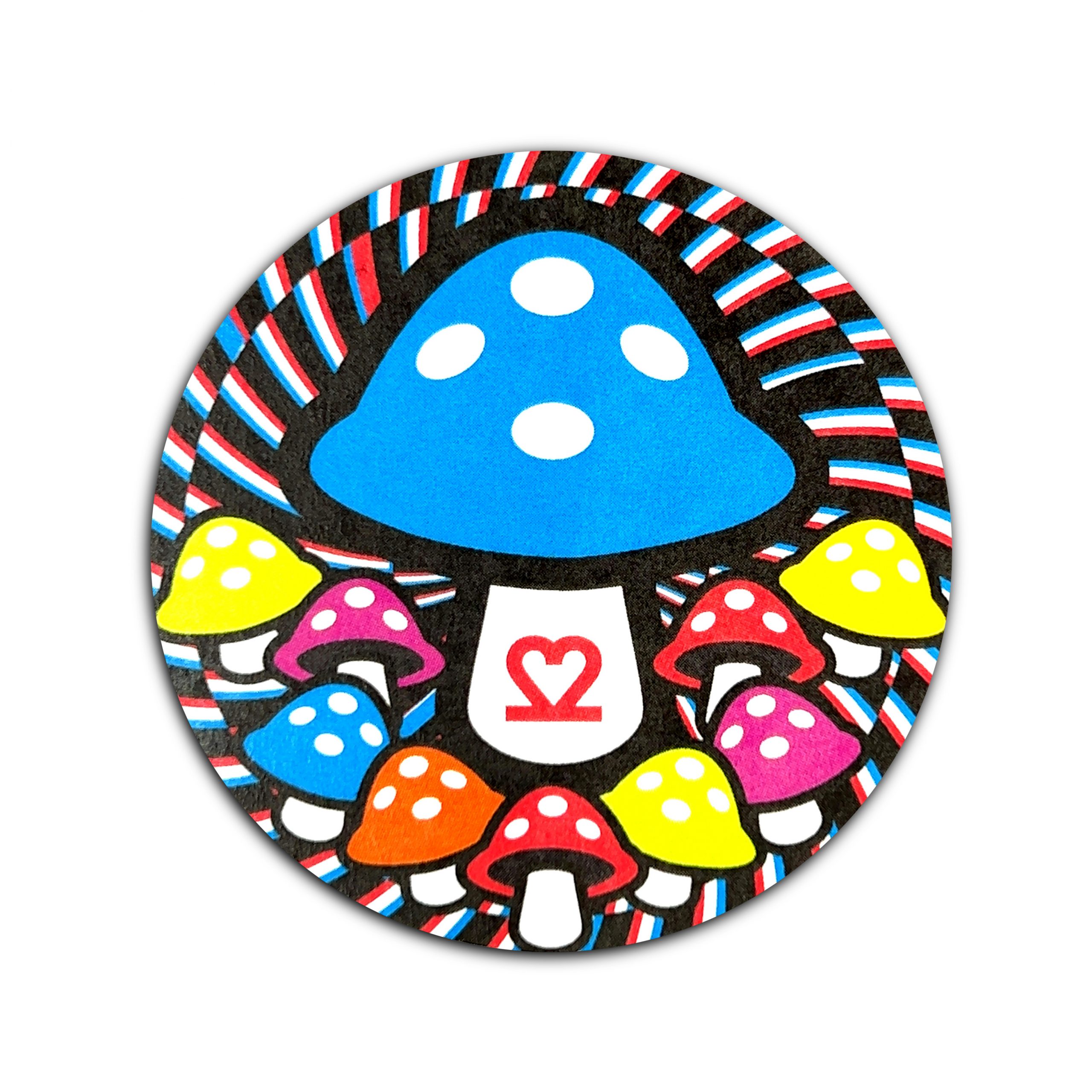 The burning man’s head is a design element connecting from year to year. From the origin of the Multiverse Astronaut, the man’s head evolved into the playing card design for the King of Clubs, then into my joker design for the unknown. Waking dreams for me conjure experiences with mushrooms at various times in my life. There is also a nod to the events happening in Ukraine with the blue and yellow mushroom caps. The numbers 22 folded into each other make a heart for love and the burn. The extended 2-fingers also signify the year 2022 and peace symbols. The 11 small mushrooms are half of 22, which is a nod to half dosing. The two bullseyes with letters W and D take on the appearance of a frog-type creature.