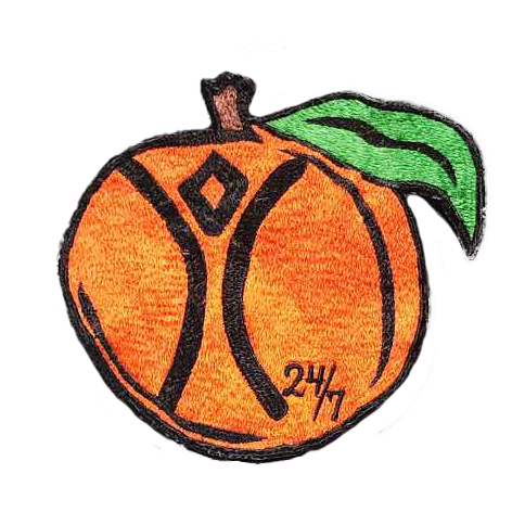 Mitchell writes, “That is a custom patch I hand made in India. I got in to the burn scene in Florida (where the org that throws the early regionals was called the burnt oranges) and my playa name is 24/7.”