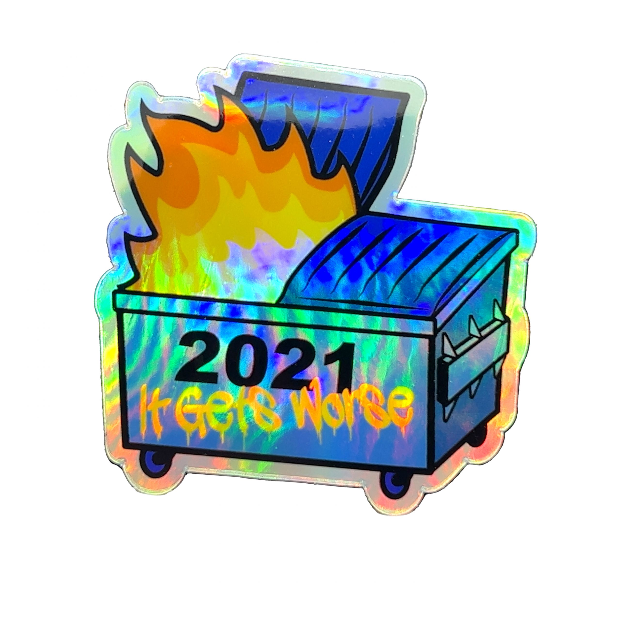 Dumpster Fire, It Gets Worse, 2021 Holographic Sticker