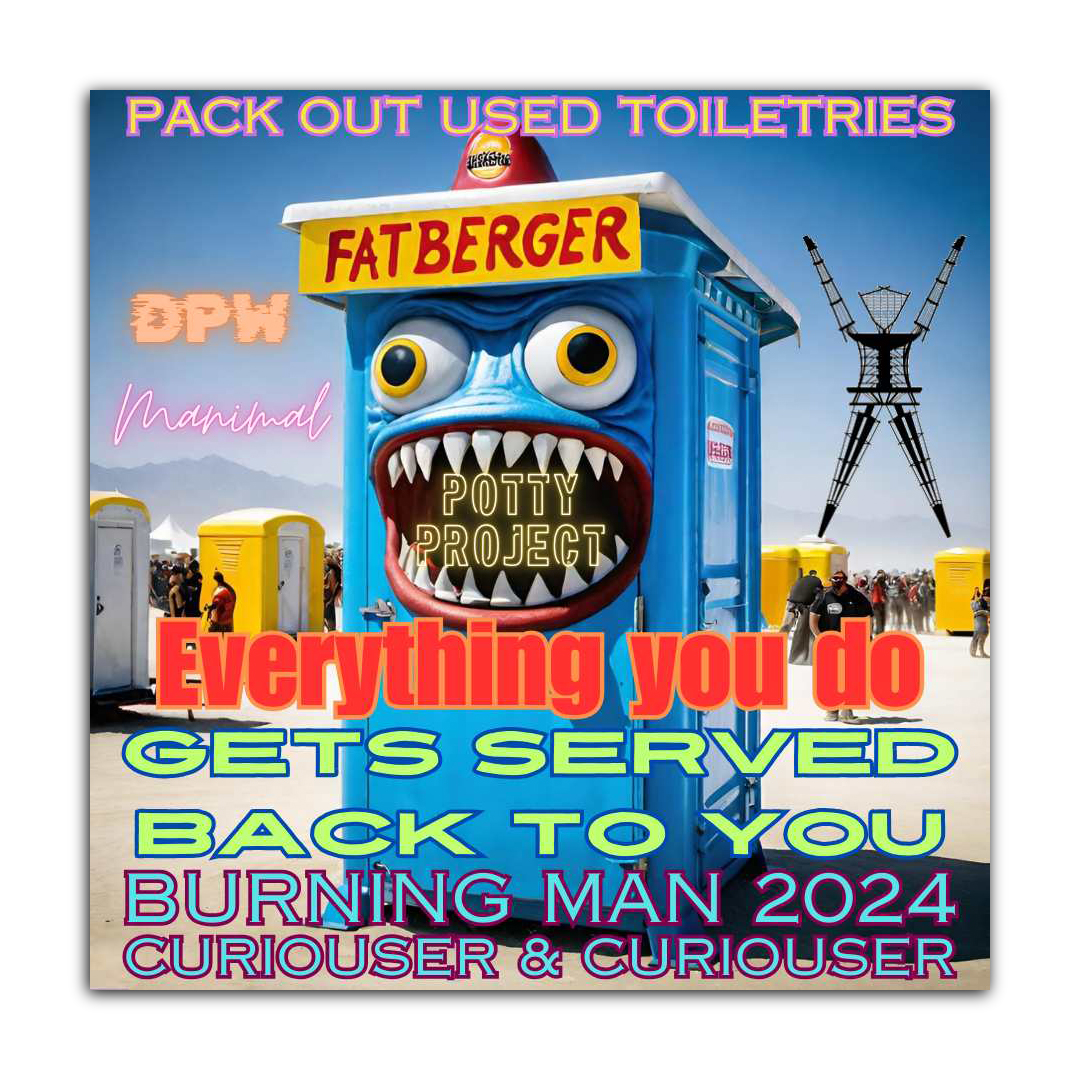 Burning Man Porta-potties – The Pottie Project is a camp dedicated to improving the Porto-Potty experience and educate the citizens of BRC on proper Porto usage and etiquette.