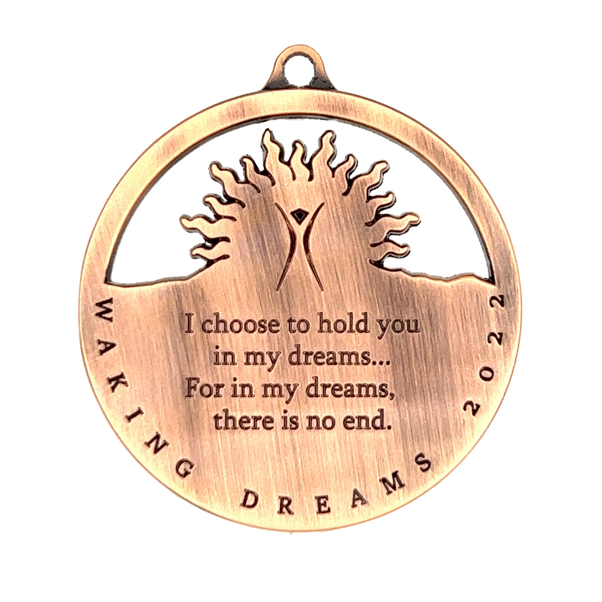“The back of the pendant represents BM Waking Dreams 2022. Here the Man is surrounded by the sun setting or rising over the Granite Mountain Range. To many, a metamorphosis of becoming one with your dreams, desires, and adventures…
