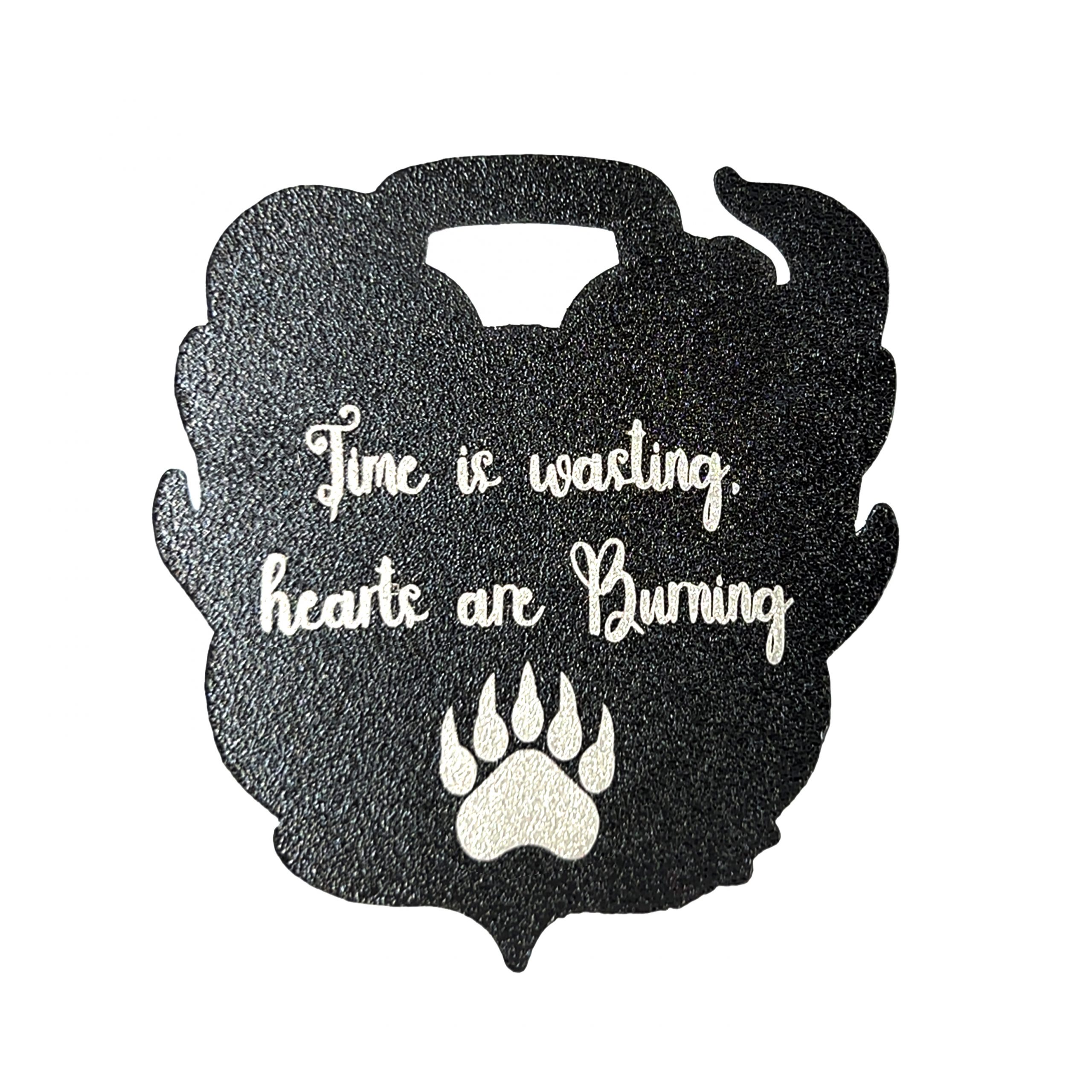 Breanna writes, “The back says “time is wasting, hearts are burning”, kind of a call to Immediacy…life is short, so make sure you’re living with a full heart and focused on the things that bring passion and joy (a “burning heart”).”