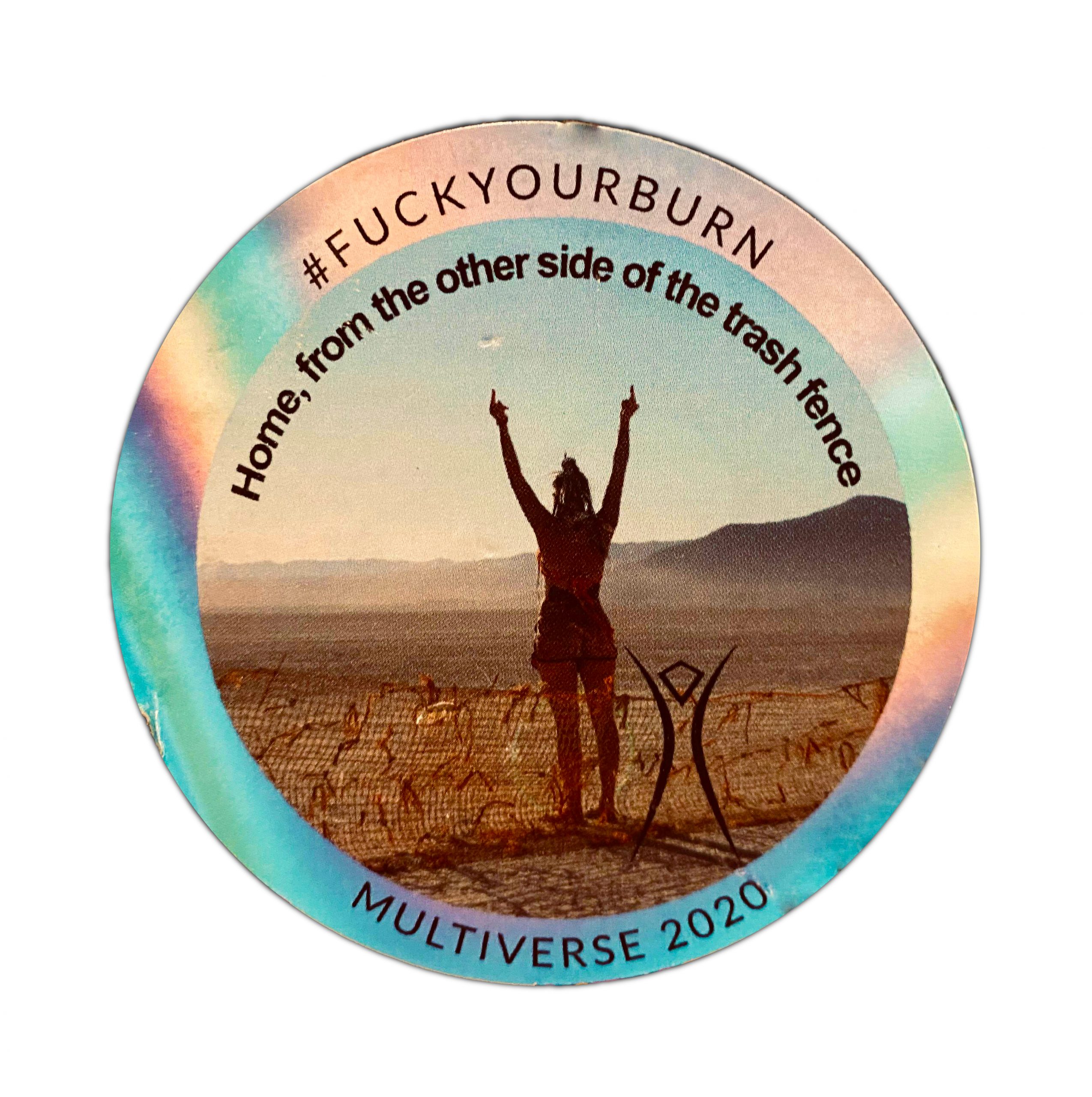 Home. from the other side of the trash fence, 2020 Sticker. Private collection of Dima Chertnik.