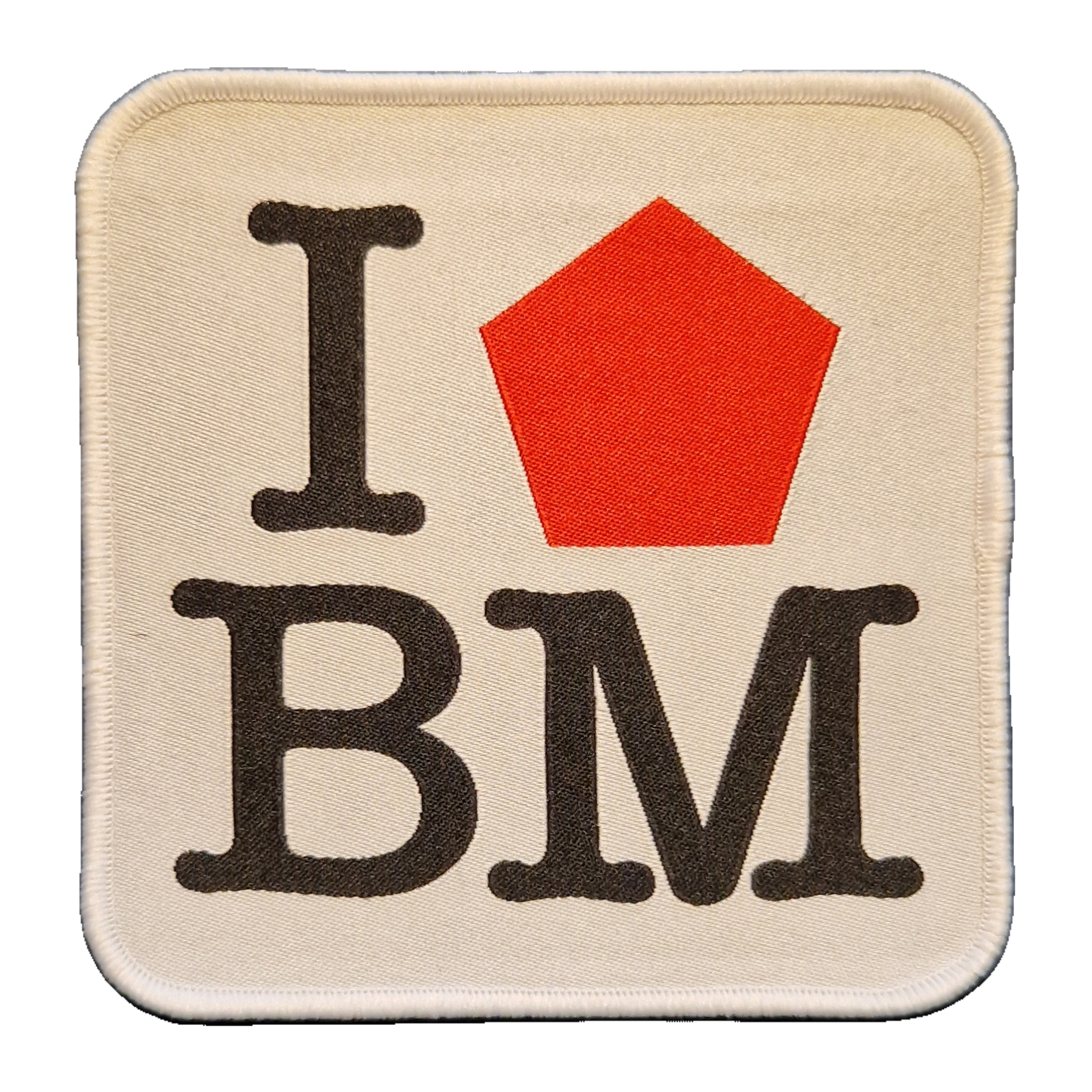 I-heart-BM, 2021 Patch by by Sebastian (Biscuit) Leyk. Sebastian writes, “I love BM” Inspired by the famous slogan of NYC on the east coast.”