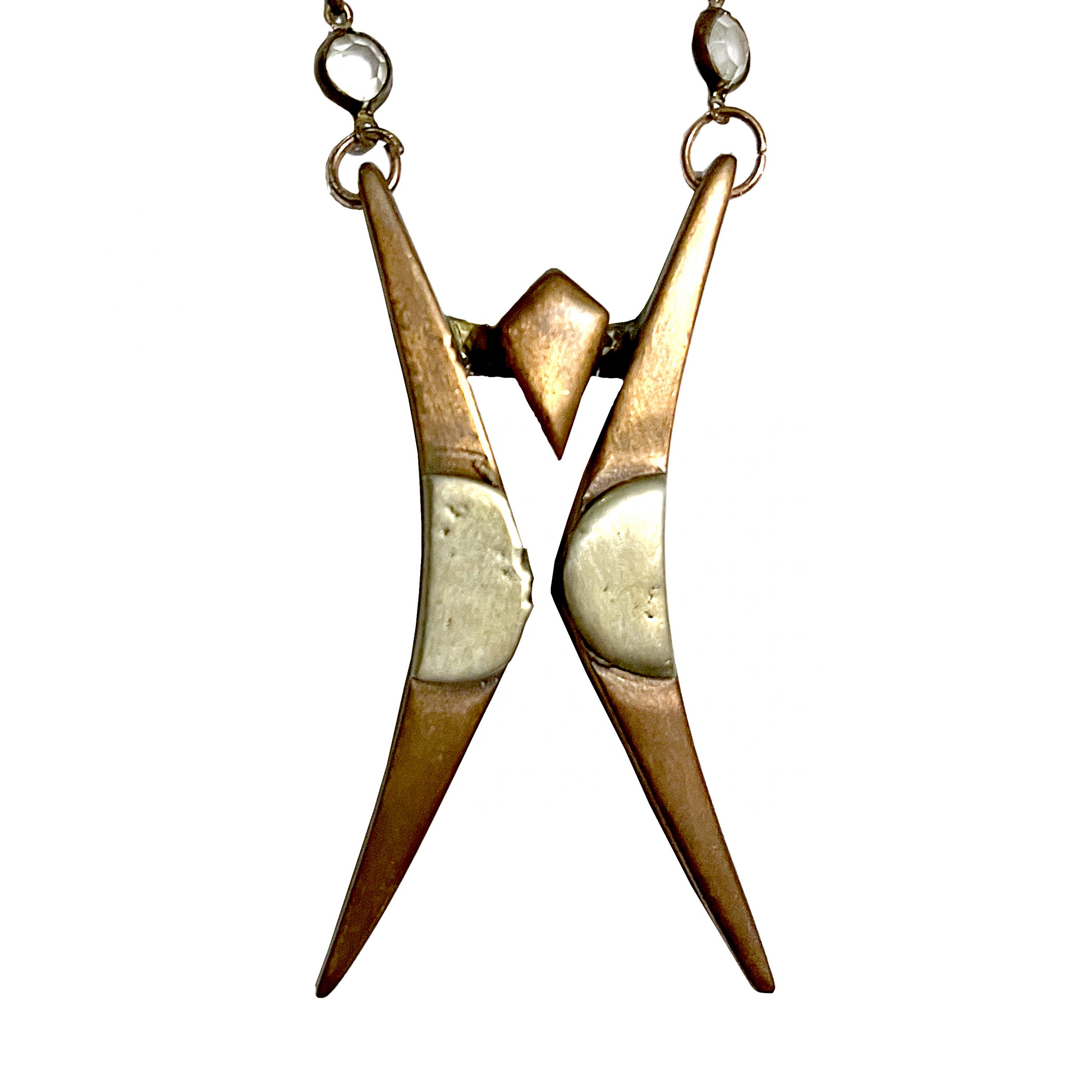 John Worley unique pendant are handcrafted pieces, each taking hours make. He uses found scraps of recycled brass and other metal and hand cuts, grinds, brazing and polishes each piece to a mirror finish.