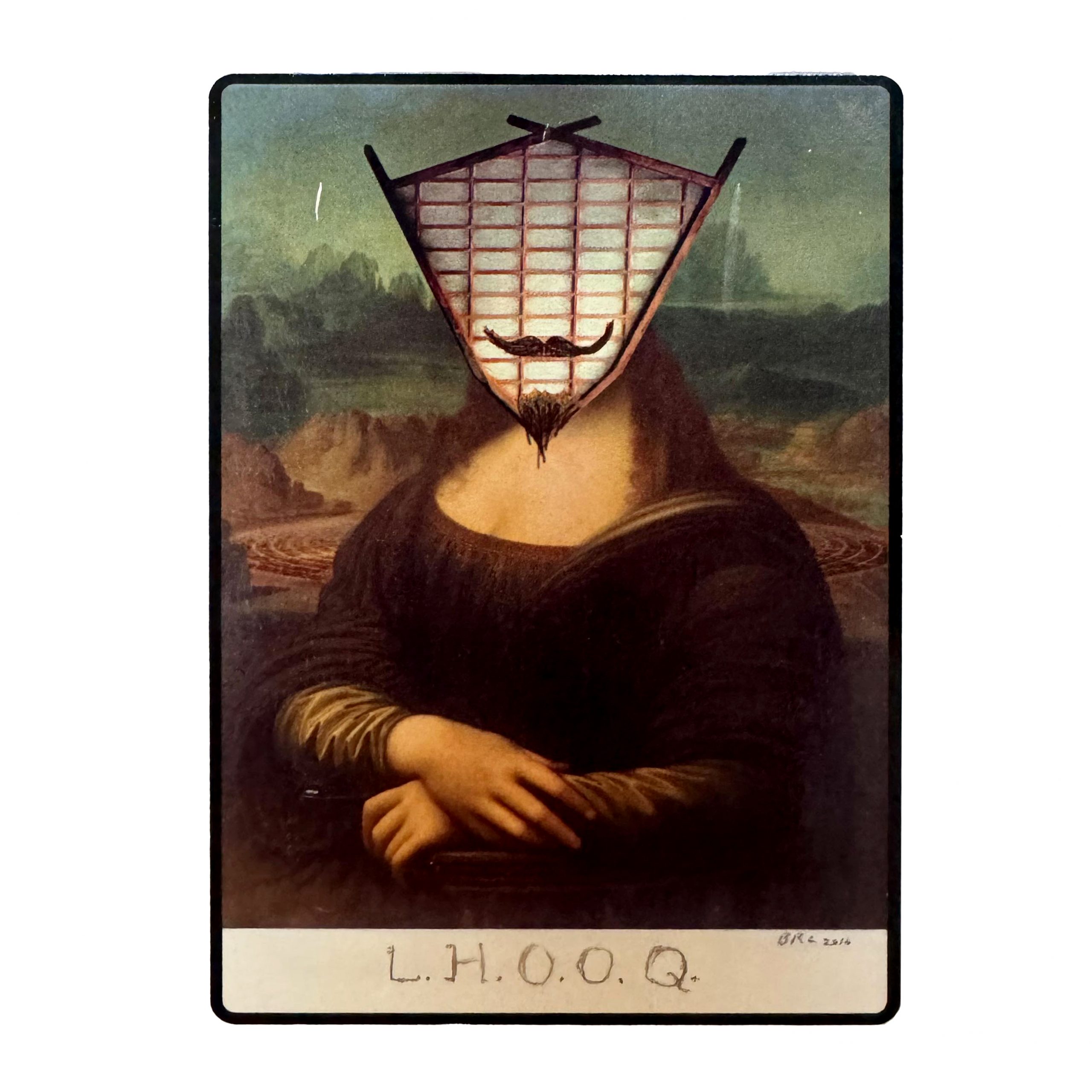 L.H.O.O.Q. is a 1919 artwork by Marcel Duchamp. It’s a cheap postcard reproduction of Leonardo da Vinci’s Mona Lisa from the early 16th century. Duchamp drew a mustache and beard on the postcard, and the piece is sometimes called “Duchamp’s Mona Lisa”. The letters in the title have no meaning, but when read aloud, they sound like the French phrase “her ass hot”