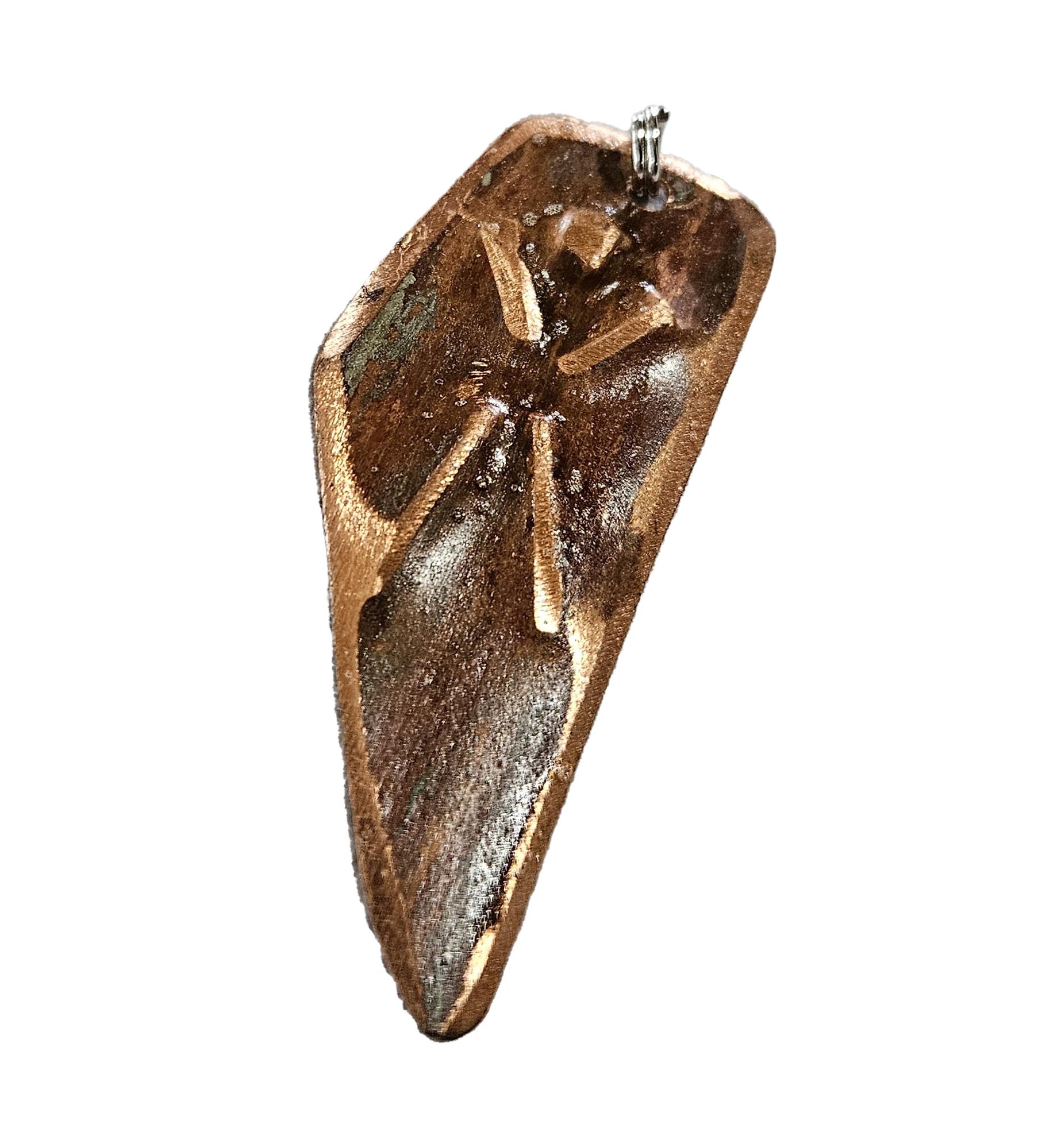 Buffalo Joe writes, “These pendants were made from recycled copper pipe in shape of Nevada. It took a 5-stroke stamp process to create the Man. We handed out 1,000+ of these EACH year between 2009-2016 at the Porch Monkey Camp.”