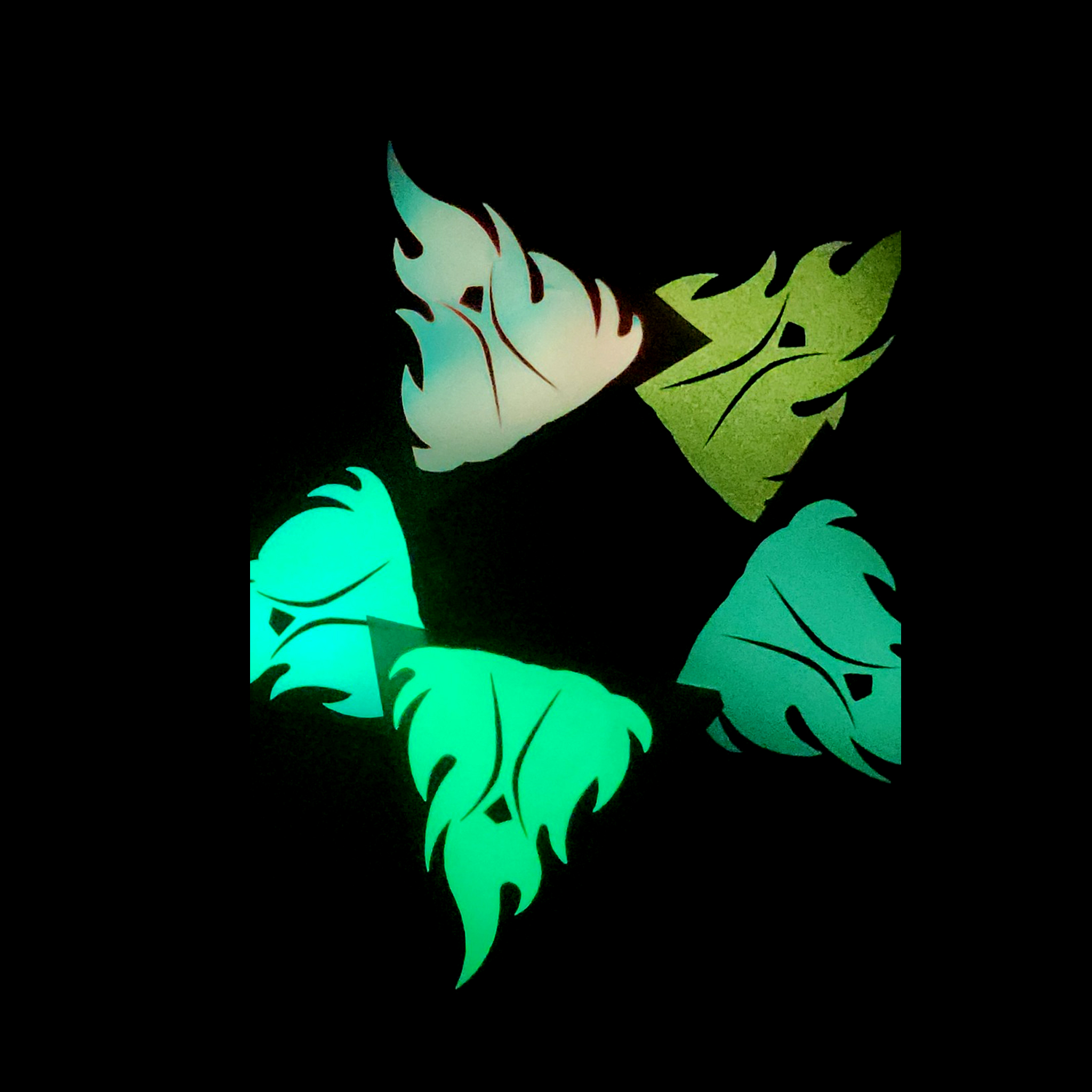 Man on Fire, Glow in the Dark, 2025 Sticker Series by Erin Cline Anderson. Vinyl stickers glow in the dark after being charged in sunlight or blacklight.