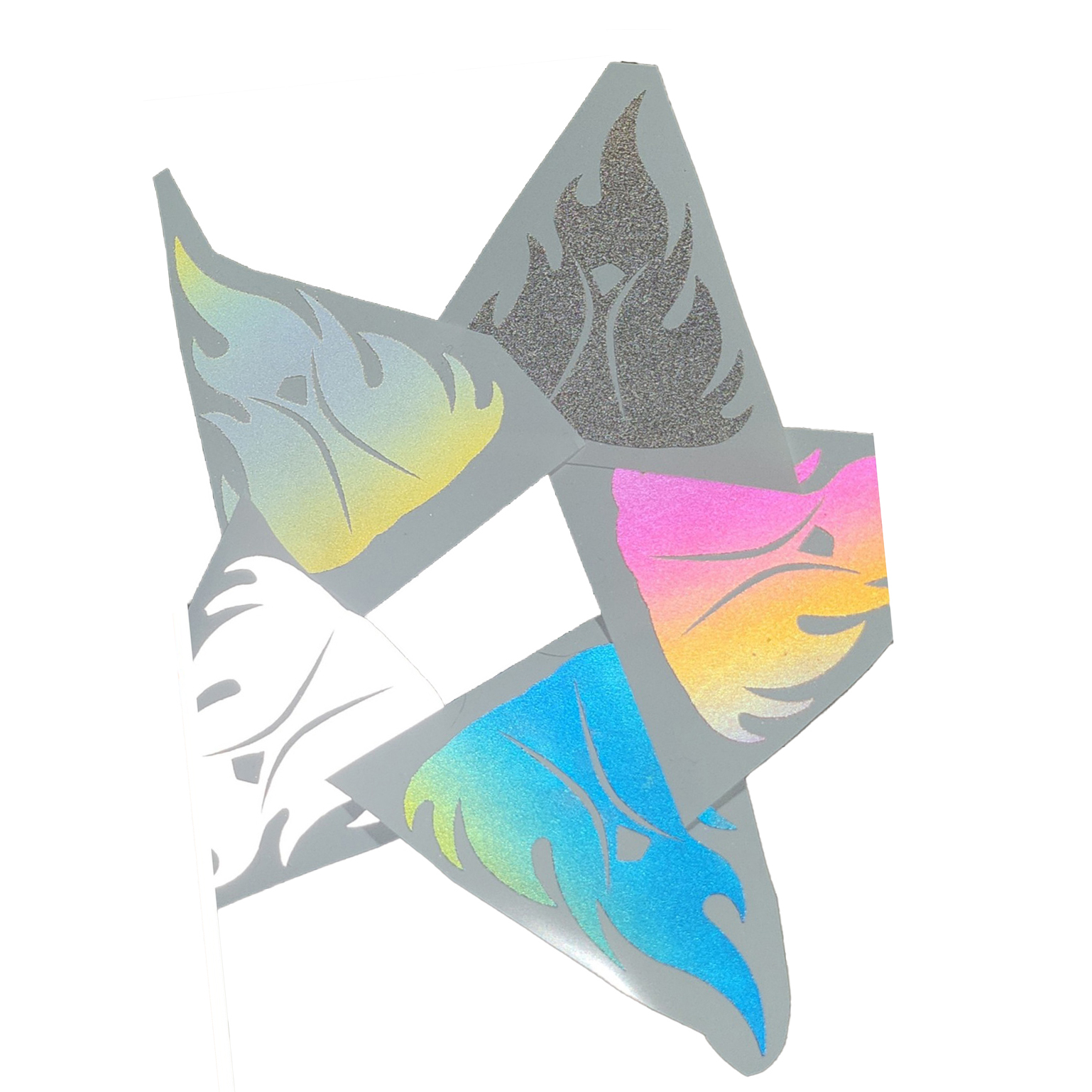 Erin is using a unique reflective sticker material and writes, “Reflective vinyl stickers shine white or rainbow when hit with bright light.”
