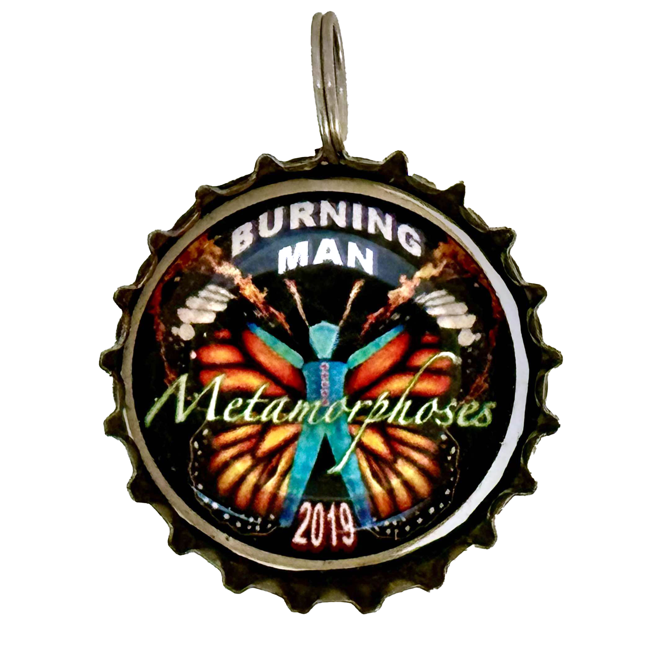 Metamorphoses, 2019 Bottle Cap Pendan by Michael Heneghan.