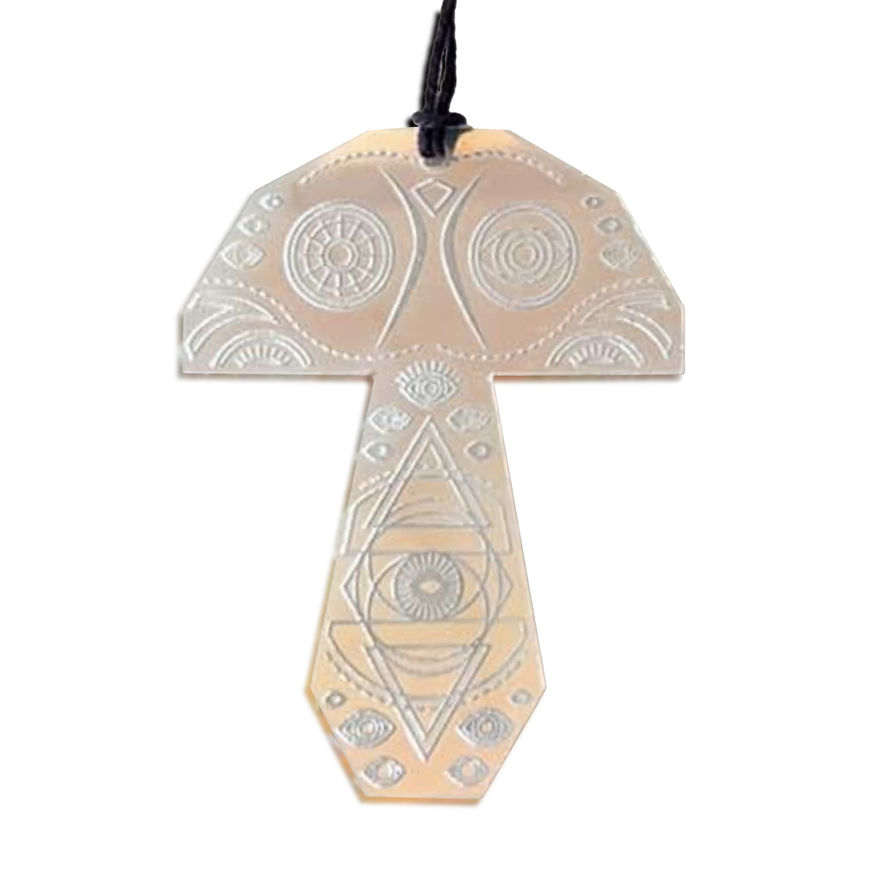 Mushroom Man Effigy, 2023 Pendant. Laser Etched and Cut plastic.