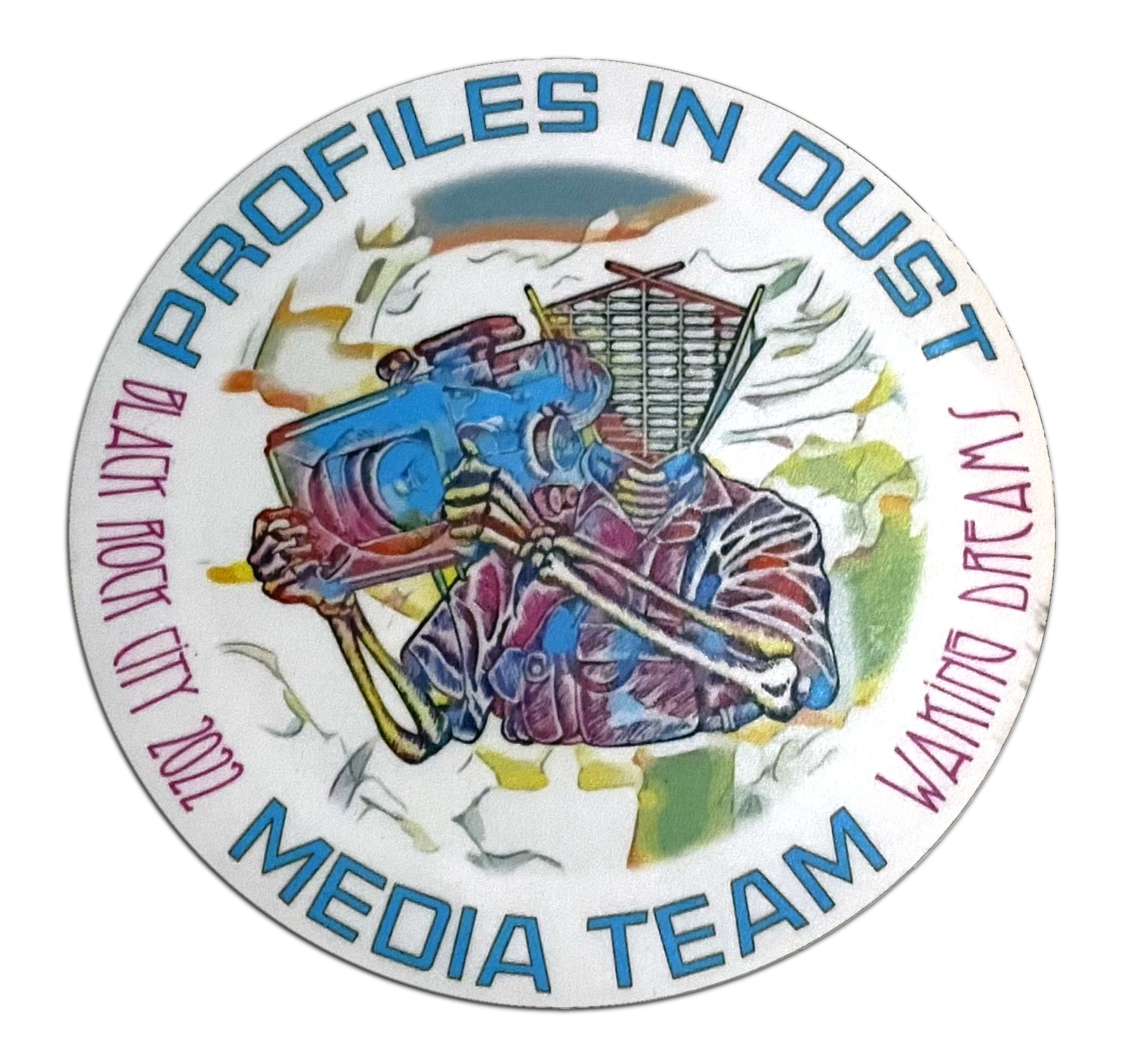 JK writes, “Profiles in Dust (PID) formed back in 2012 as a volunteer media team for Burning Man, originally covering profiles of artists on playa. PID has made over 50 mini-documentaries about Burning Man to date and releases them as gifts to the community. Each year, PID hands out at least one new sticker design and is also associated with the camp called “Kam Kru”, which hosts The Narwhal.”
