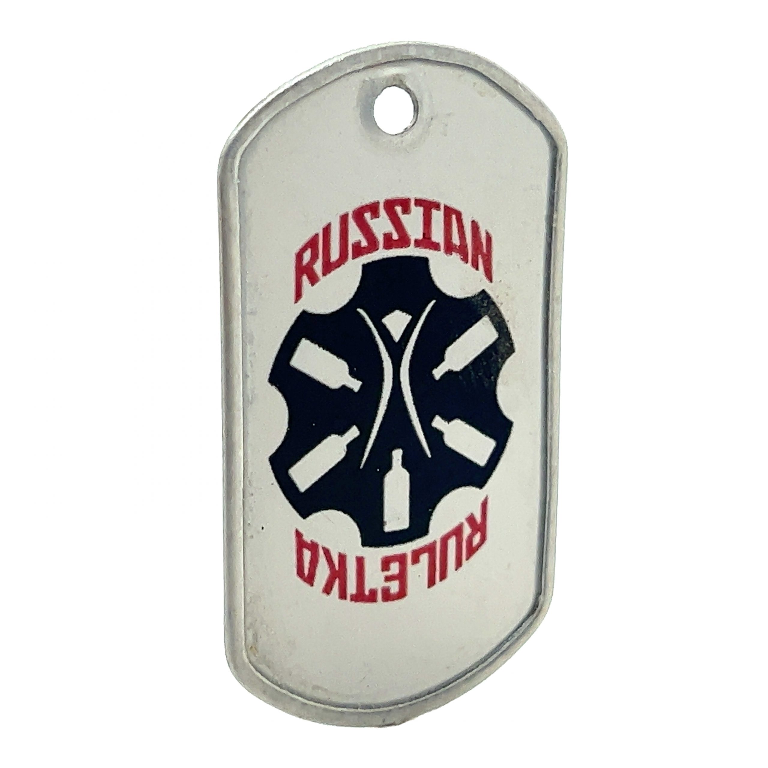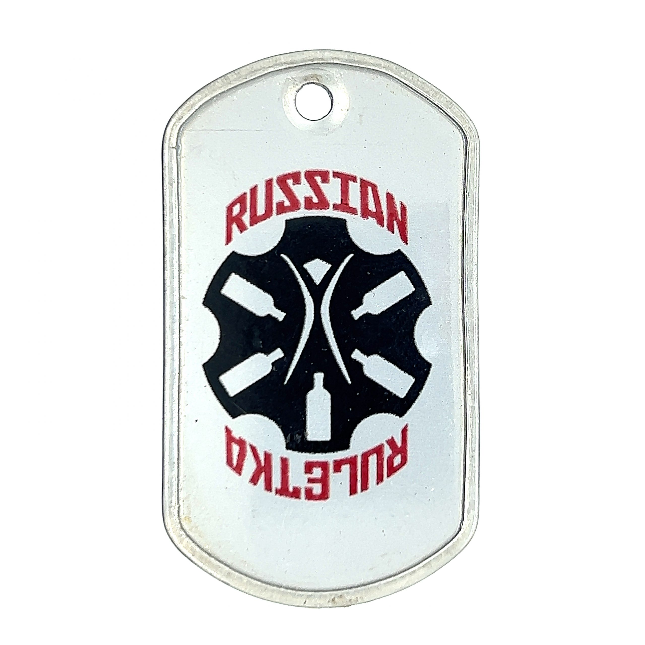 Russian Ruletka, Dog Tag Pendant. translation: Russian Roulette, most likely a Camp Drinking game.