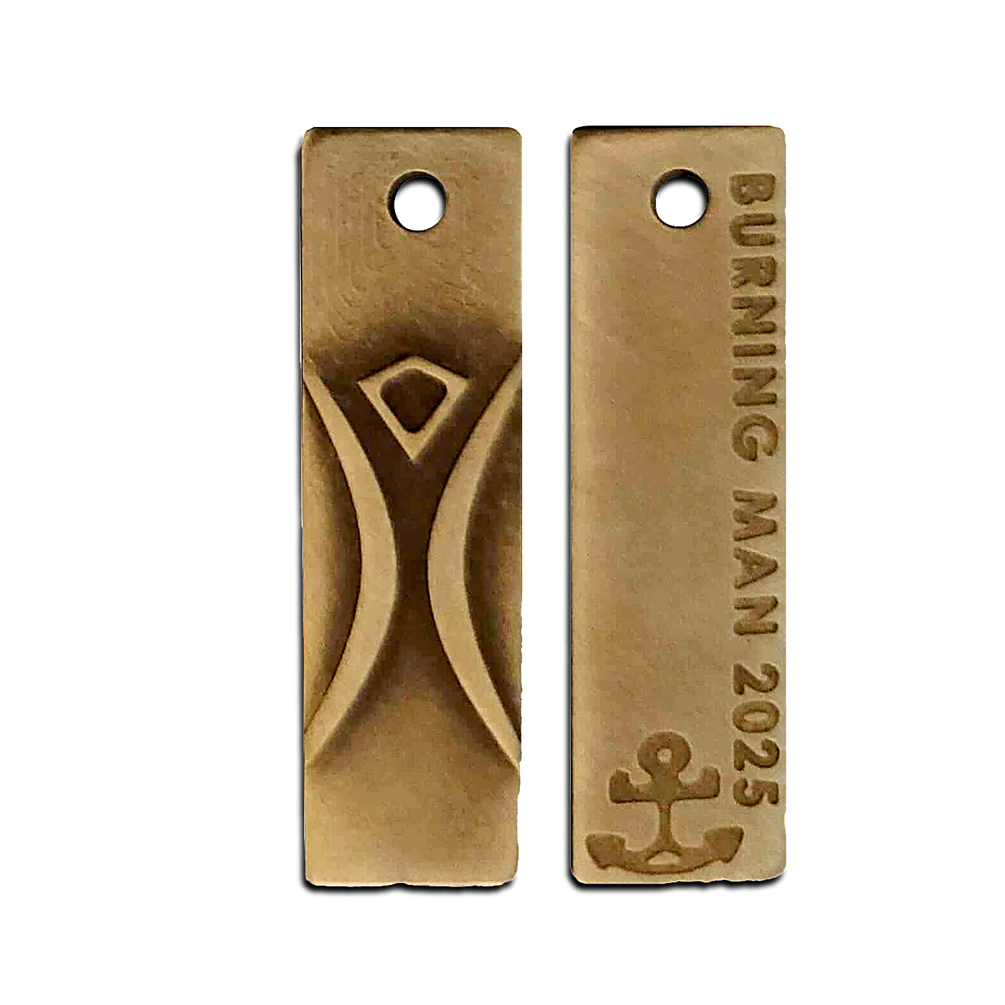 Jonathan (Entomo) West is a veteran of over 20 years and has been creating original pendants for a large variety of camps every year. He designs and machines brass pendants in his studio with a CNC Mill. He is one of the Playas most prolific and artistic makers. Each year he makes unique pendants for a large number of camps and are highly treasures by collectors.