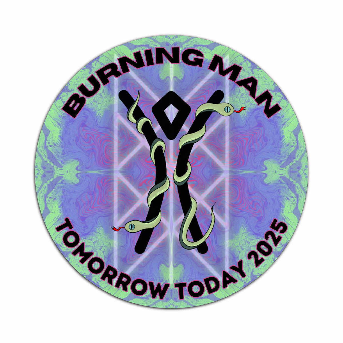 2025 is also the year of the snake, and here are two snakes depicted traveling in opposite directions. There are many ways to interpret this, but my intention is to represent the duality of anything in space and time that can exist, including Tomorrow Today.